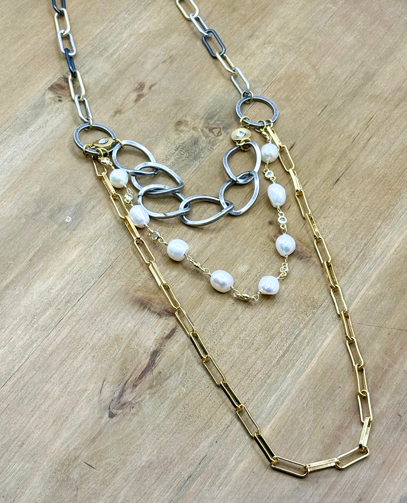 RMD LAYERATION TRI-GOLD/PEARL/GOLD NECKLACE
