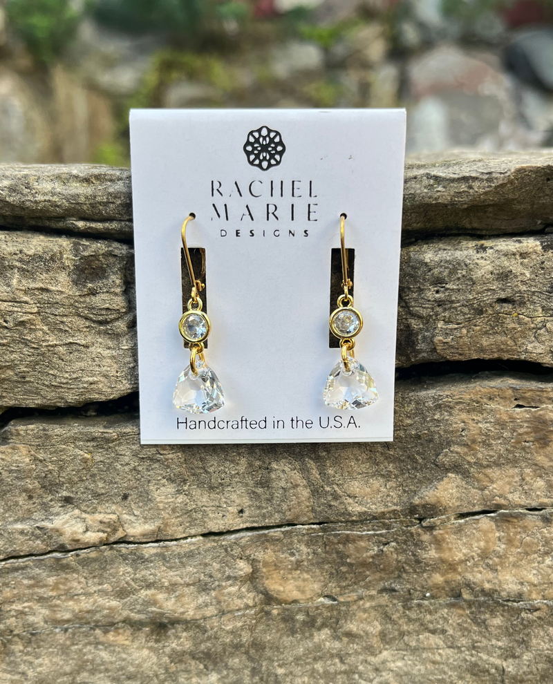Rachel Marie's pieces are locally made in Michigan using Swarovski crystals, as well as lead and nickel-free backings. Preserve the item at its highest quality, avoid direct contact with water, moisturizing creams, or perfume. This special piece is to be the last item you put on before leaving the house.Live in sparkle. USA Made.Final Sale