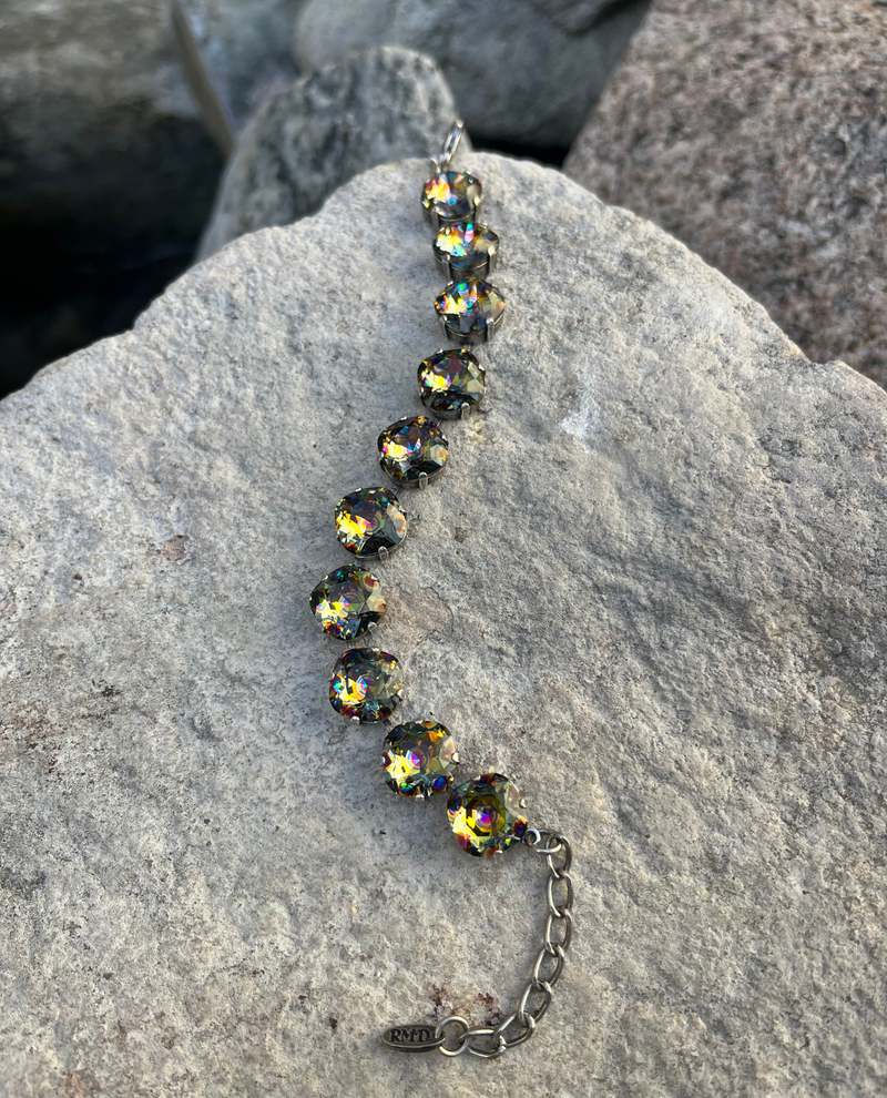 The Rachel Marie Designs STEPH BRACELET offers a meaningful accessory designed to accompany you through your daily journey. Its elegant design features a row of cushion cut stones. This bracelet is perfect for layering or wearing alone, and the extender accommodates multiple sizes of wrists.