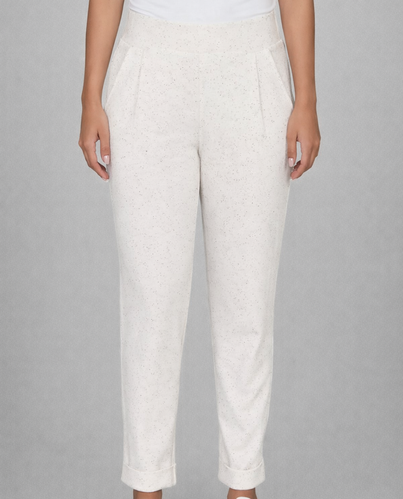 Cozy meets cool. This ankle pant is crafted from an ultra-soft speckled knit, styled with an easy pull-on waist, slash pockets, and cuffed hems that bring just enough attitude.