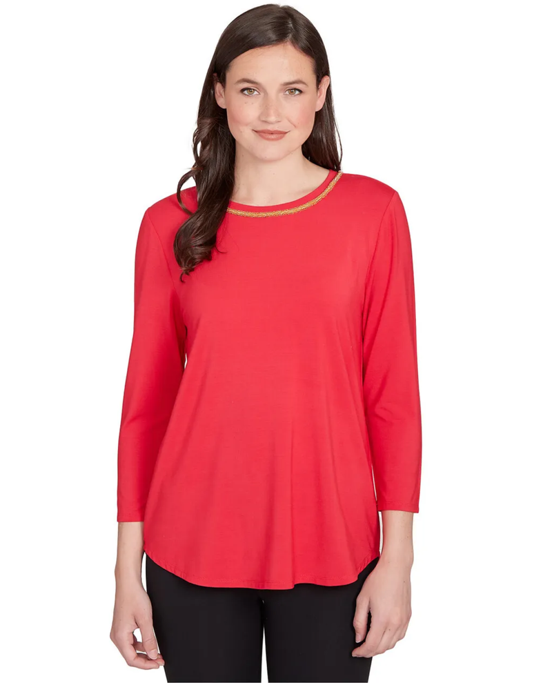 The Ruby Road 12351 Embellished Scoop Neck Top offers a stylish blend of comfort and elegance. Its scoop neckline is accented with delicate embellishments, adding a subtle sparkle perfect for both casual outings and special occasions. Designed to flatter, this top provides a comfortable fit that enhances your everyday wardrobe with a touch of sophistication.