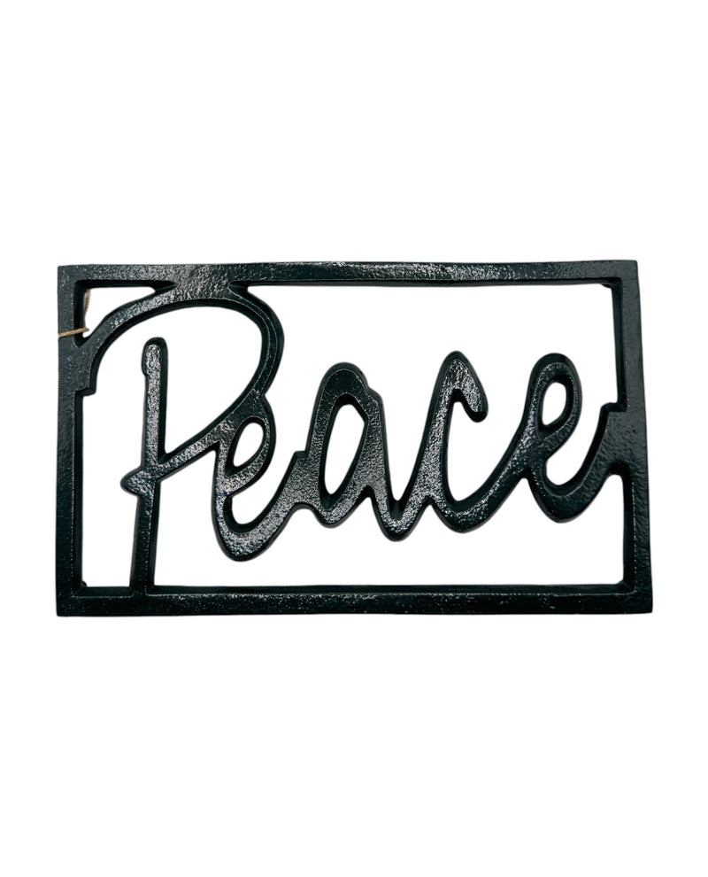 This sturdy finished aluminum trivet offers a practical and thoughtful addition to your kitchen. Measuring 10" x 6" x 0.75" high, it features rubber feet to protect your countertops from scratches. The trivet displays charming sentiments— "Peace," "Merry," and "Noel"—bringing warmth and festive spirit to your home while keeping your surfaces safe from heat.