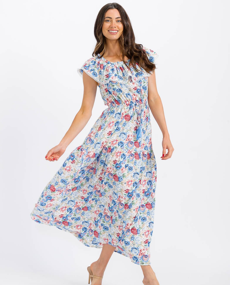 Embrace effortless elegance with this stunning tiered floral maxi dress. Featuring delicate layered tiers that create beautiful movement and dimension, this piece celebrates feminine style with its romantic floral print. The flowing maxi silhouette offers comfort and sophistication, making it perfect for garden parties, weddings, or any occasion where you want to feel graceful and put-together. The tiered design adds visual interest while the maxi length provides versatile coverage you can dress up or down. A wardrobe essential that brings joy to your everyday moments.