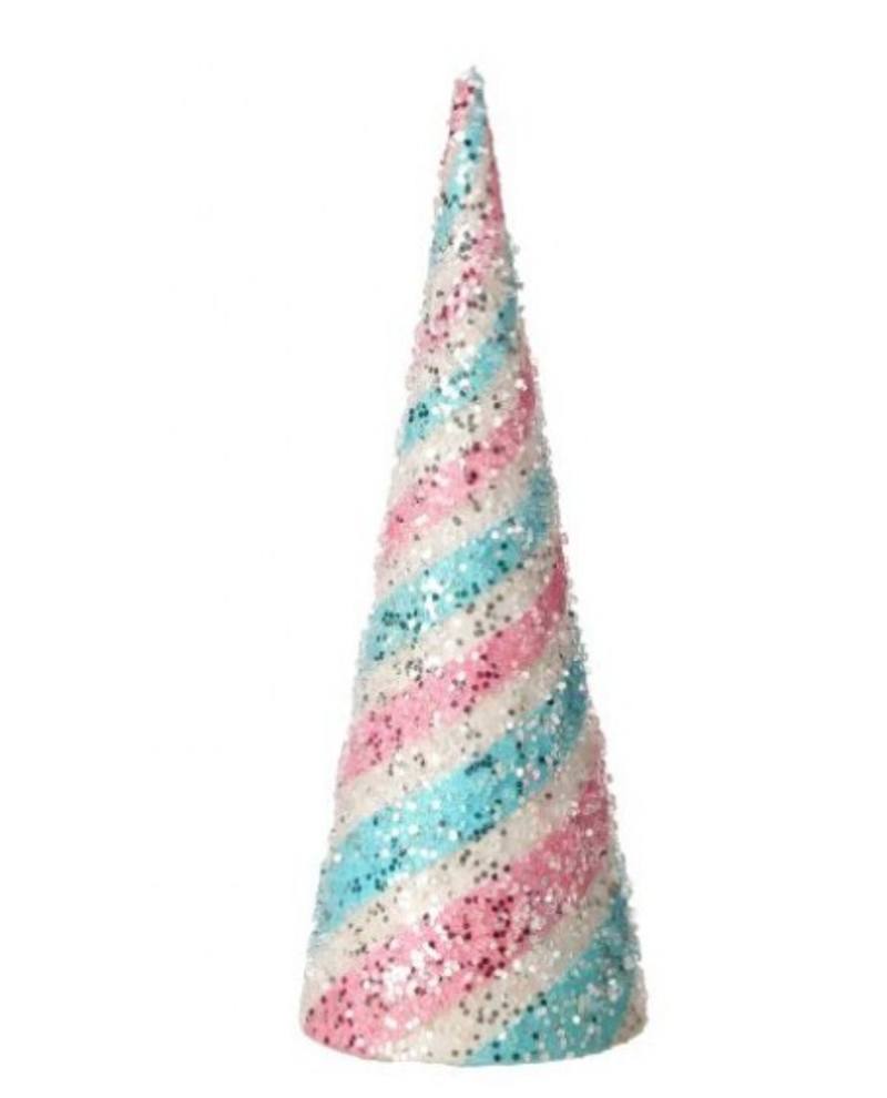 Add a festive sparkle to your holiday decor with this Small Glitter Iced Striped Cone Tree. Its delicate stripes and shimmering glitter create a charming winter look, perfect for tabletops or shelves. This compact decoration brings a cozy, joyful touch to any space, making your seasonal setup feel complete and inviting.