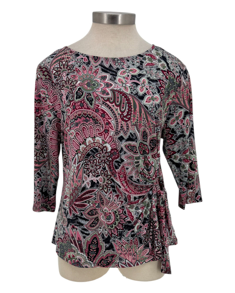 Embrace effortless style with the Southern Lady 42L9P Print Tie Side 3/4 Top. Its flattering tie-side detail allows you to customize the fit for comfort, while the 3/4 sleeves provide versatile coverage. The charming print adds a touch of personality to your wardrobe, making it a perfect go-to for casual outings or laid-back days. Designed to keep you comfortable and confident, this top supports your everyday ease with a stylish flair.