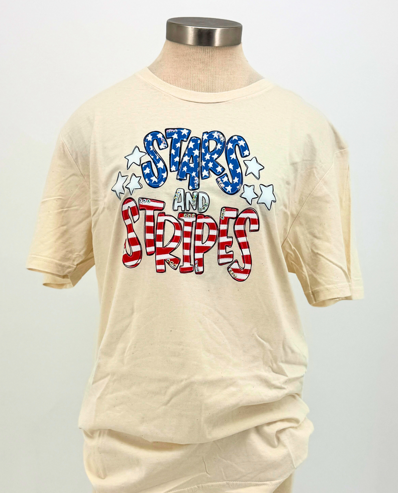 Celebrate your patriotic spirit with the Stars & Stripes Sparkle T-Shirt. Designed for comfort and style, this tee features a dazzling stars and stripes pattern that adds a festive touch to any outfit. Perfect for showing your pride on special occasions or casual days, it combines eye-catching sparkle with a soft, breathable fabric to keep you comfortable all day long. Embrace your unique style while staying cozy and confident.