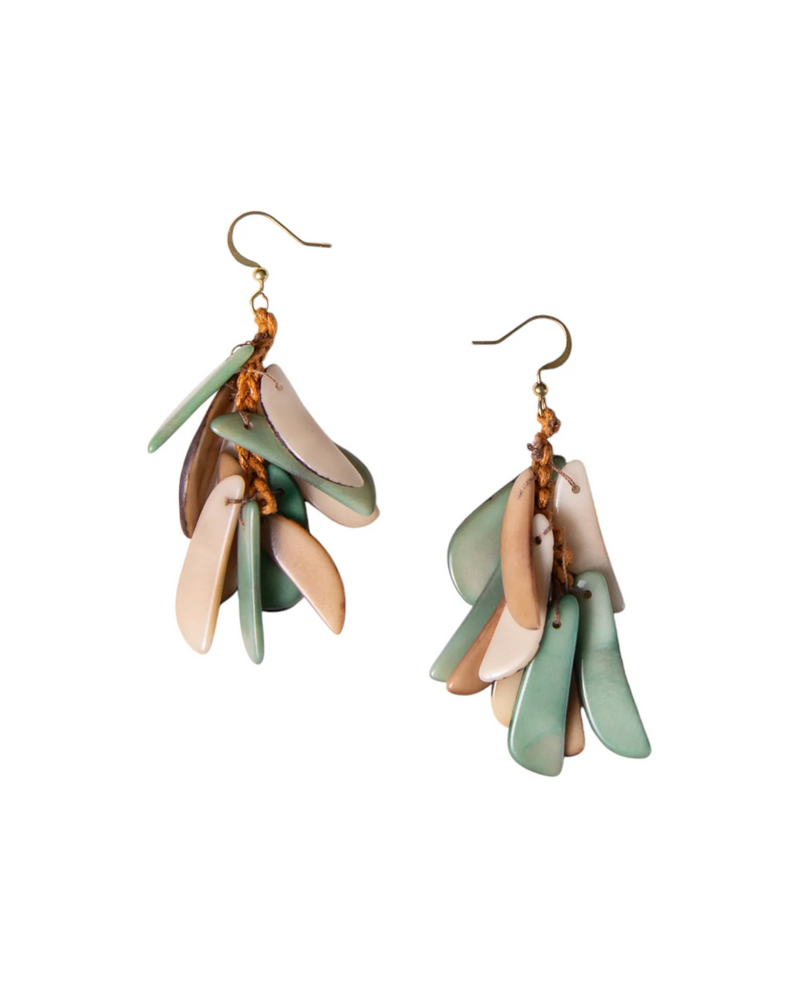 Add a burst of color to any ensemble with the Kendra Earrings, featuring a dynamic cluster of vibrant Tagua chips. These lightweight earrings are perfect for any boutique looking to offer their customers a bold yet playful accessory, ideal for injecting fun into everyday wear.