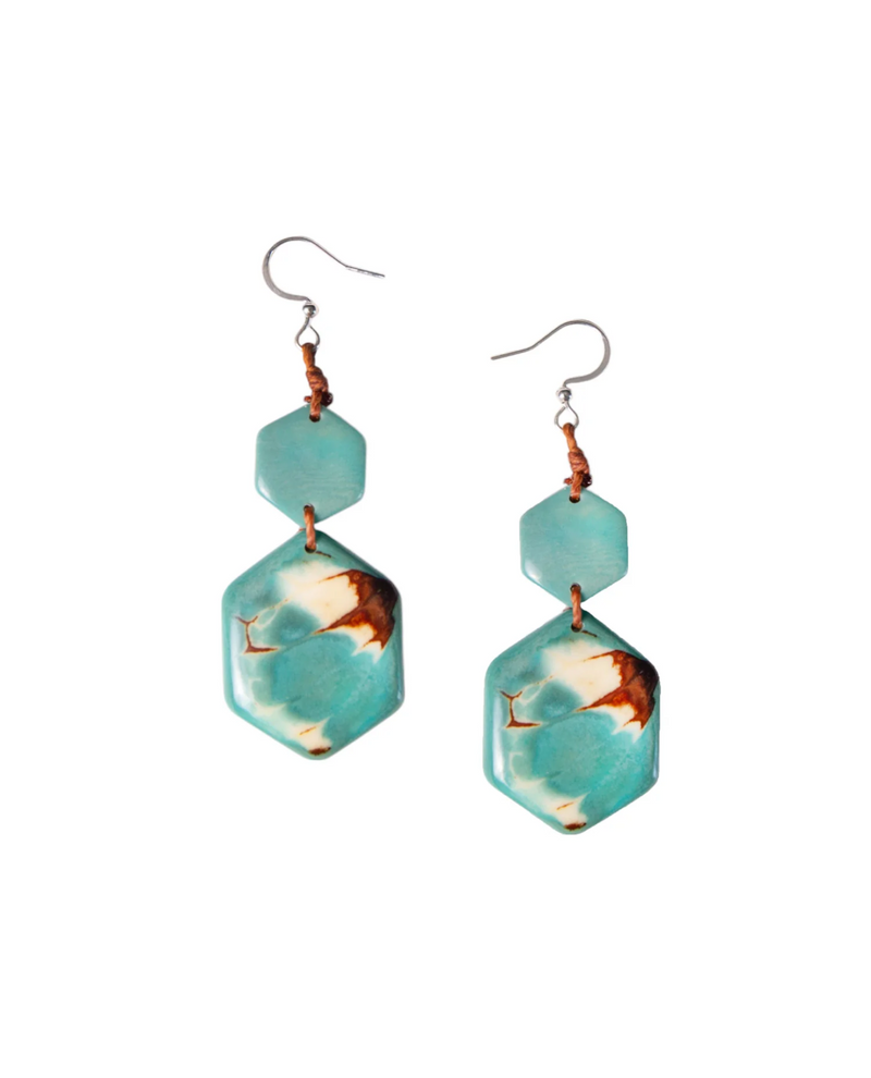 The Delfi Earrings reflect a sense of balance and harmony, as if drawing energy from the point where everything converges. With their two hexagon-shaped tagua pieces, sustainably sourced from eco-friendly materials, these earrings represent a perfect equilibrium in design. Lightweight and versatile, they offer your customers a striking piece with both aesthetic appeal and a story grounded in sustainability.