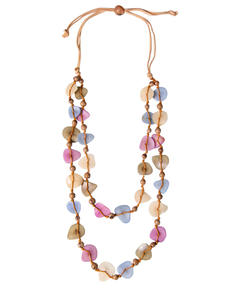 Showcase your unique style with the handmade Sky Necklace from Tagua. Crafted with layers of sustainable tagua slices and accented with acai berries, this boho piece is a perfect addition to any outfit. The adjustable 28"-36" length allows for a comfortable and personalized fit. Handmade in Ecuador with organic dyes.