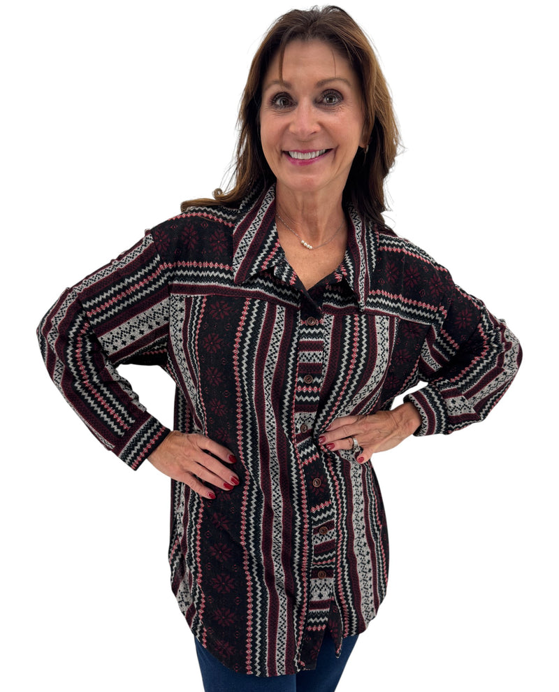 Elevate your everyday wardrobe with this versatile long-sleeve button-up print blouse. Featuring a classic silhouette with eye-catching print details, this piece transitions seamlessly from office to weekend wear. The structured fit and quality construction ensure lasting comfort and style, making it a reliable choice for building a wardrobe you'll love reaching for again and again.