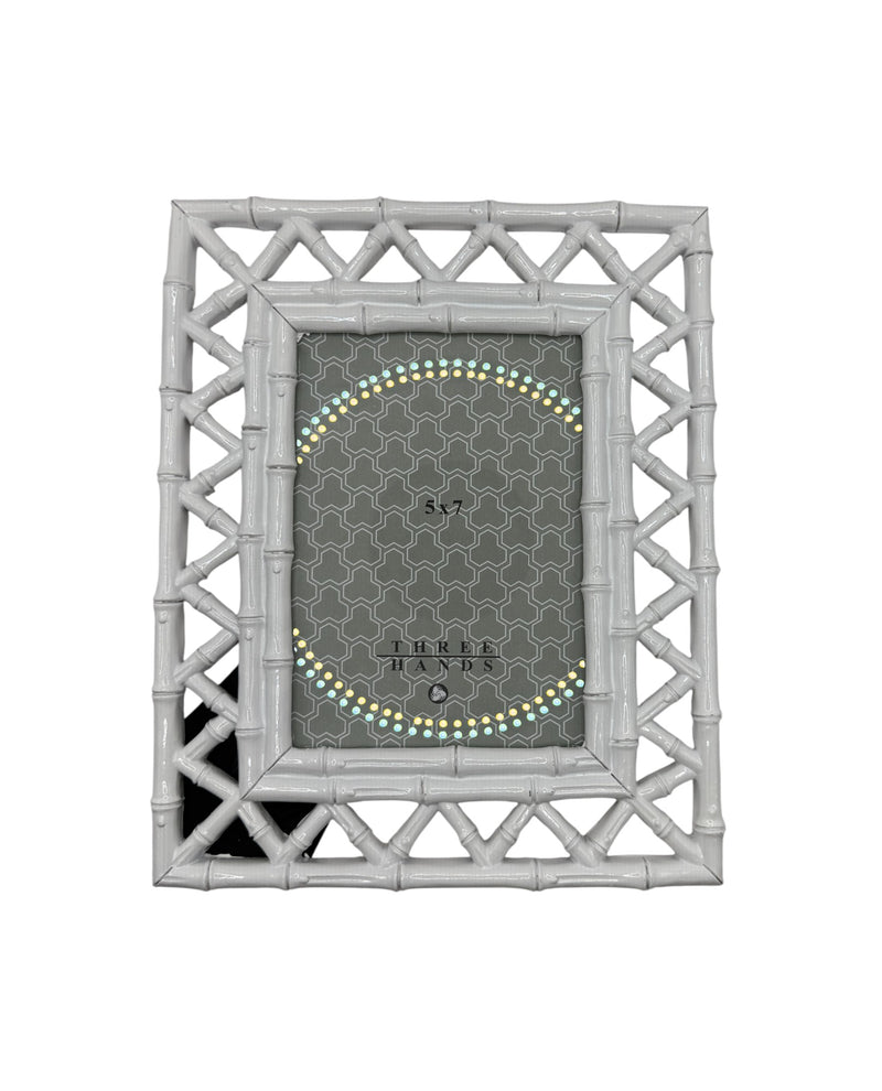 The Three Hands resin, bamboo look tabletop picture frame combines a sleek white shiny finish with a glass cover for a modern yet natural aesthetic. Measuring 8.5 by 10.5 inches on the outside, it securely holds a 5 x 7-inch photo. This frame is a stylish way to display your favorite memories while adding a touch of elegance to any room.