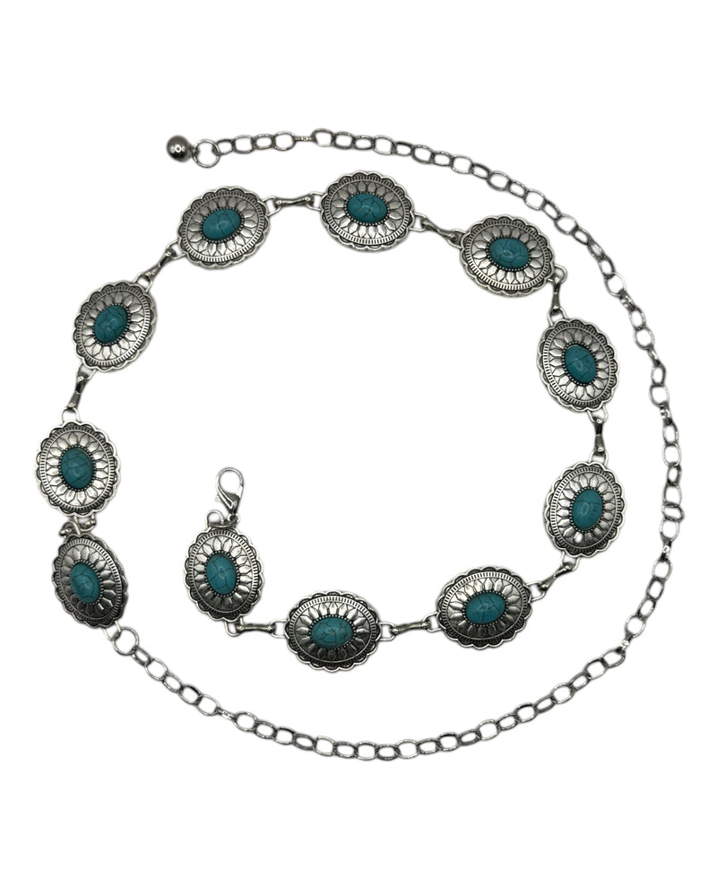 The Silver Southwest Chain Belt adds a distinct touch to any outfit with its intricate Southwestern-inspired design and durable silver finish. Perfect for enhancing both casual and dressy looks, this belt offers style and functionality, making it an essential accessory for those seeking unique, lasting detail in their wardrobe.