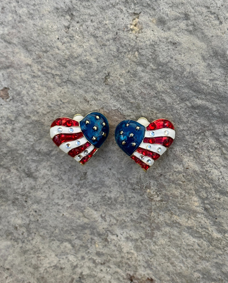 Celebrate your patriotism with the UE739-C USA Heart Flag Clip Earrings. These earrings feature a heart-shaped design showcasing the American flag, crafted for comfortable clip-on wear. Perfect for expressing your national pride with an easy-to-wear accessory that complements any look.