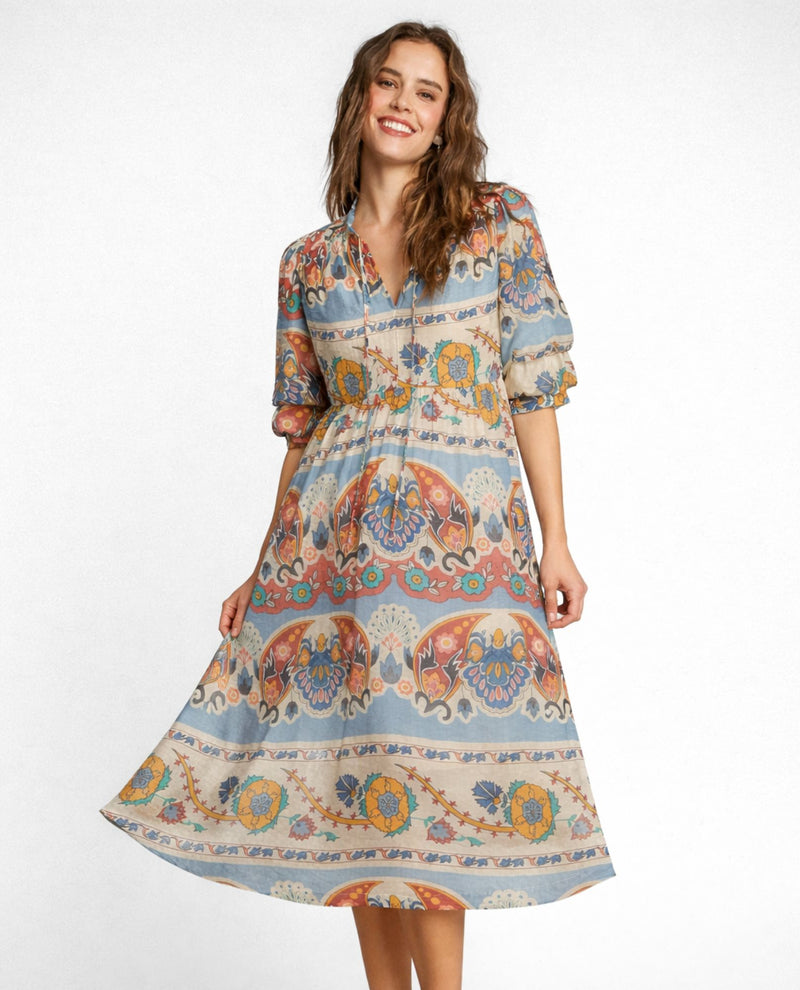 Elevate your everyday style with this charming UMGEE border print midi dress. Featuring a striking geometric border design that draws the eye, this piece strikes the perfect balance between casual comfort and polished sophistication. The midi length offers versatile styling options—dress it up with heels for a night out or keep it relaxed with sneakers for weekend errands. The thoughtful print adds visual interest while remaining easy to coordinate with your existing wardrobe. Perfect for anyone seeking a dress that feels as good as it looks, this UMGEE piece is ready to become a go-to favorite in your closet.