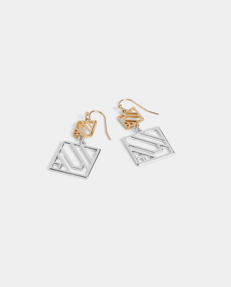 WHISPERS WN005029 TONE SQUARE DANGLE EARRING