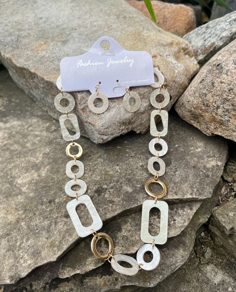 Elevate your style with our stunning Gold Geo Necklace & Earring Set. The geometric design adds a modern touch to any outfit, while the warm gold finish complements all skin tones. Perfect for special occasions or adding a touch of elegance to your everyday look. This versatile set makes a thoughtful gift or a well-deserved treat for yourself.